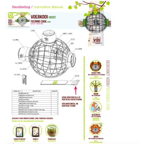 LONA V30 est une cage d’alimentation ronde qui protège les petits oiseaux de jardin contre les prédateurs naturels tels que les chats et les grands oiseaux, leur permettant de se nourrir en toute tranquillité. Avec 2 unités d’alimentation et un porte-pot de beurre d’arachide avec barre de trapèze, il a toutes les garnitures nécessaires pour donner aux petits oiseaux de jardin juste ce dont ils ont besoin. . Le V30 peut également être utilisé avec du beurre d’arachide LONA. Une vue fantastique! Et les oiseaux adorent le beurre d’arachide LONA.